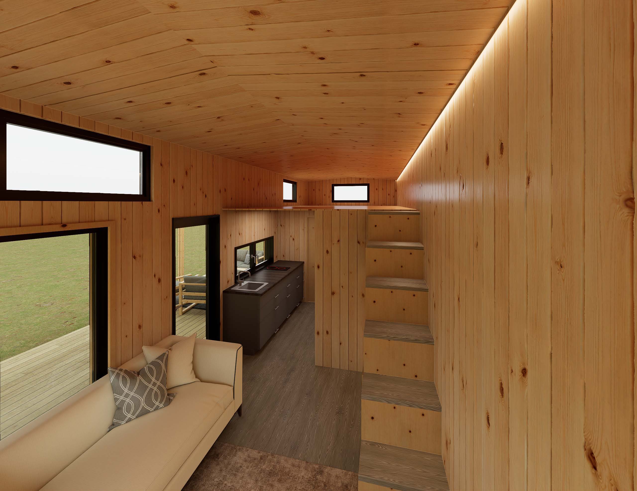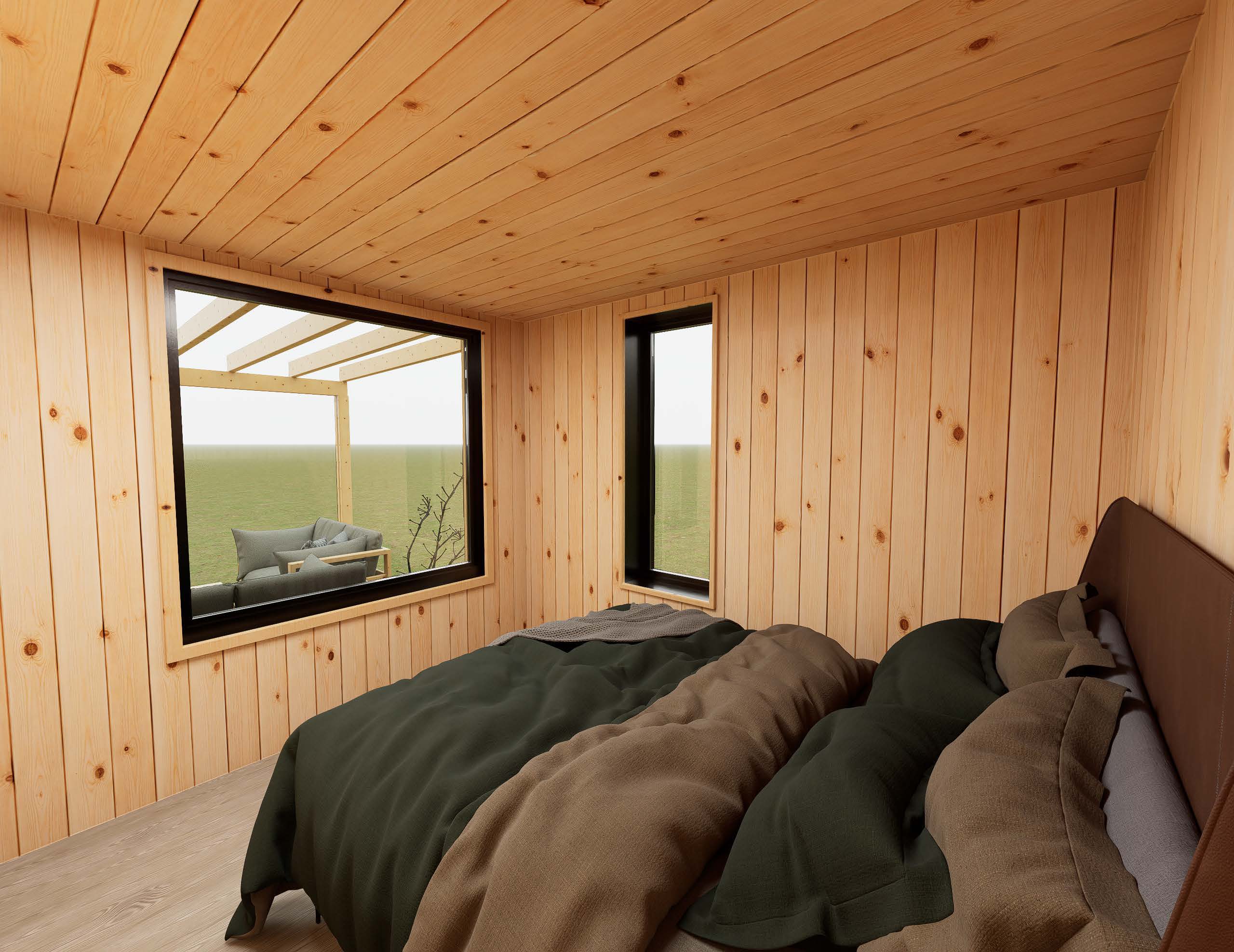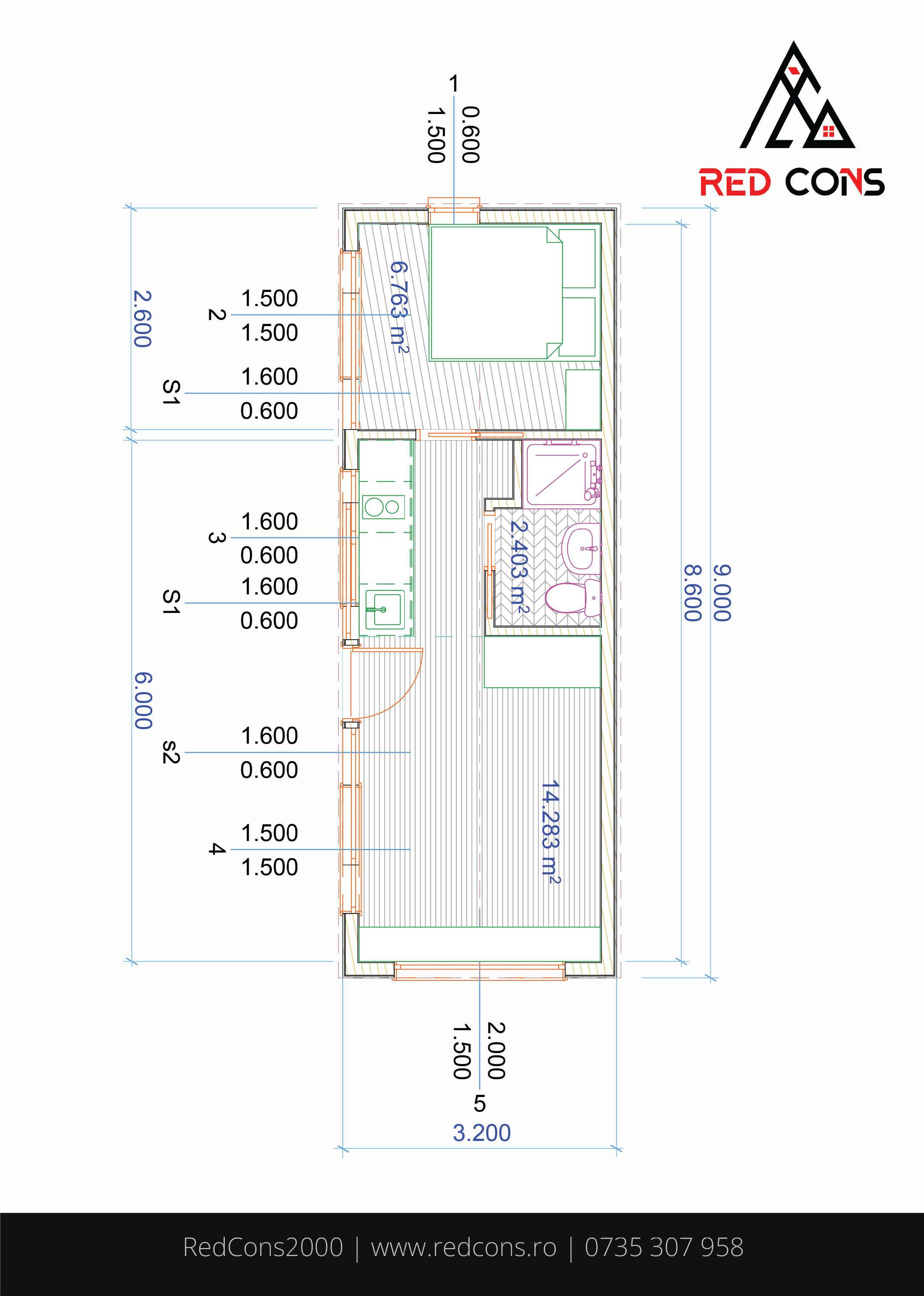 Dimensiuni Suprafață: 29,44 m² Lungime: 9.20 m Lățime: 3.20 m Înălțime: 3.50 m Structura perete Lambriu interior pin nordic Membrană anticondens Structură lemn Izolație vată bazaltică Membrană exterior Dublu sistem de șipci (vertical + orizontal) Tablă click exterior Dotări principale ● Structură lemn masiv ● Izolație vată bazaltică ● Lambriu pin nordic interior ● Baie complet echipată ● Încălzire în pardoseală ● Instalație electrică completă